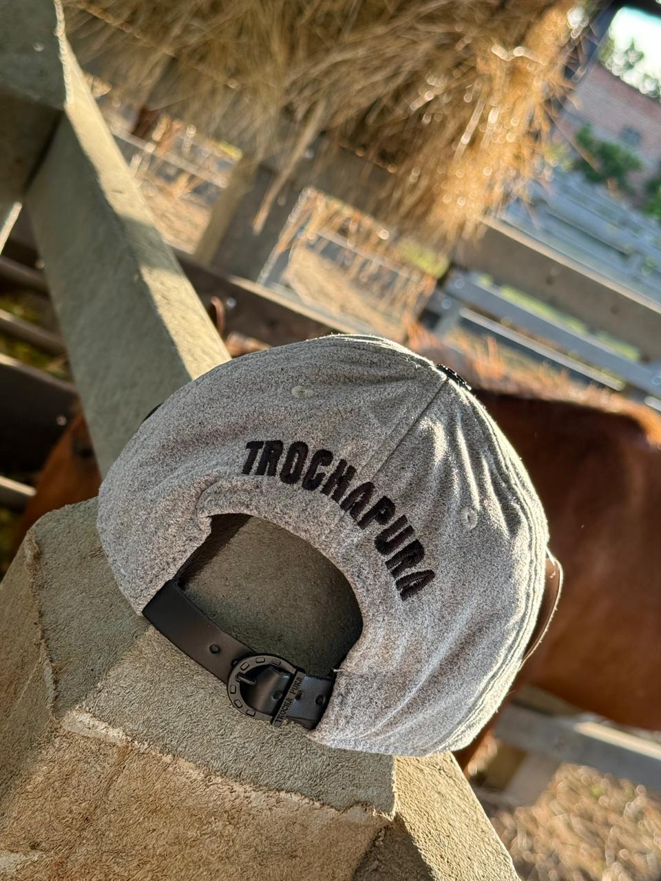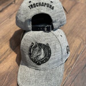Gorra elaborada en tela gruesa. En su frente cuenta con un bordado liso, costuras de refuerzo en la visera superior. Cuenta con un sistema de ajuste en hebilla metálica luciendo así una gorra de alta gama. En la parte interna, el sesgo que se usa es personalizado. En la parte de atrás cuenta con un segundo bordado de nuestra marca Trocha Pura. En el Lateral izquierdo cuenta con un detalle metálico en forma de herradura. Fabricamos gorras con detalles hermosos.